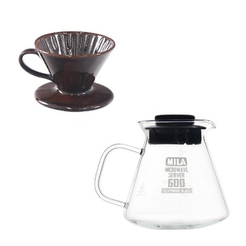 【MILA】日本製 織部燒 咖啡濾杯01-南蠻黑釉(附MILA耐熱玻璃壺600ml)