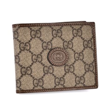 GUCCI GG Supreme 塗層帆布二折卡片小短夾(米色/烏木色)