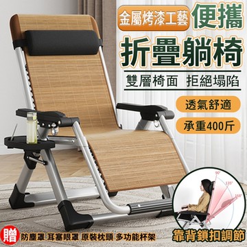加強合金鎖扣-藤編款 無段式高承重透氣休閒躺椅-附置物杯架 防塵套 椅枕 摺疊躺椅 休閒椅 加粗40MM鋼管