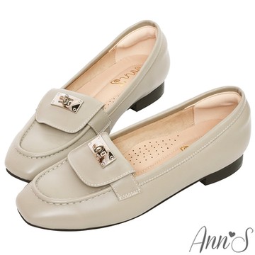 素面馬銜扣真皮樂福鞋-米白