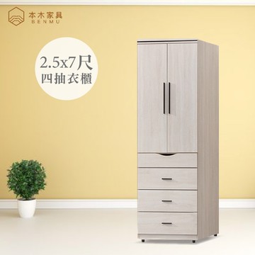 本木-白皙 2.6尺三抽衣櫥2.6尺