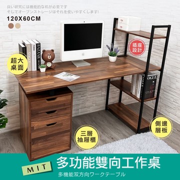 Hyman PluS+ 插座款-MIT製造厚板系列-多功能層架式收納附抽屜櫃雙向工作桌/電腦桌/書桌(2色可選)