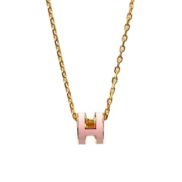 HERMES 愛馬仕 粉色琺瑯 金色鍍金 Mini Pop H 項鍊 【二手名牌BRAND OFF】