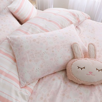 鴻宇 100%精梳棉 美國棉300織 60支 眠眠兔粉 雙人四件式兩用被床包組