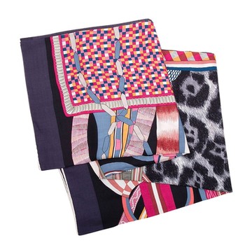 HERMES La Selle Imaginaire 喀什米爾蠶絲140大披巾(海軍藍/玫瑰)