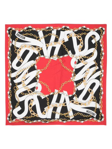 Celine 古董紅絲巾 金鏈 - 巴黎地標圖案 23 x 22.5 英吋