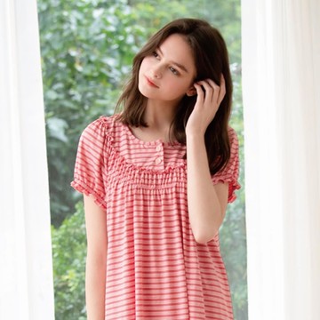 女士夏季短袖睡裙純棉雙層紗甜美可愛學生家居睡裙寬松撥款可外穿