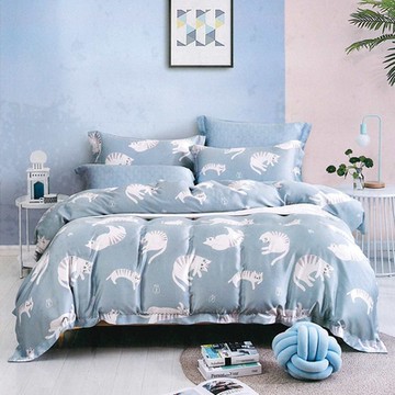Saint Rose頂級精緻100%天絲兩用被床包組(包覆高度35CM)-慵懶貓咪-藍 加大