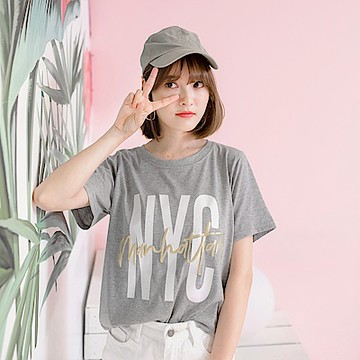 OB嚴選-台灣製造.紐約英文燙金印字圖T上衣
