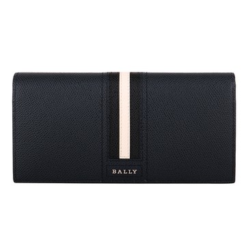 BALLY- 紅白槓防刮皮革對開8短夾 (黑色)