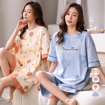 上衣_療癒烘焙.純棉五分袖滾邊居家睡衣(裸麥棕-烤餅乾)