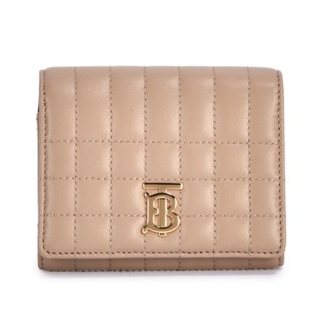 BURBERRY 巴寶莉 Lola 衍縫羔羊皮折疊短夾-奶茶色