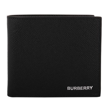 BURBERRY 巴寶莉銀字LOGO 男士對開短夾 (黑)