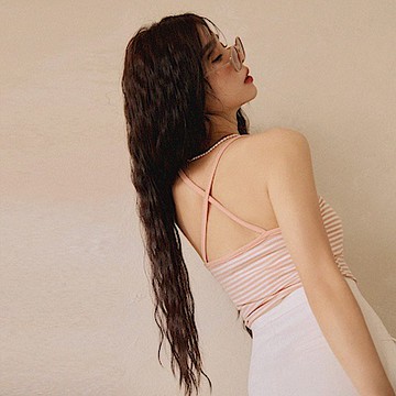 OB嚴選-棉質條紋滾邊後交叉細肩背心