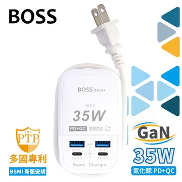 BOSS 氮化鎵 PD+QC 35W USB智慧型充電器-60公分