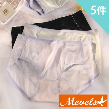 Mevels瑪薇絲-加大尺碼清新裸感中高腰內褲/冰絲內褲/無痕內褲(5件組)
