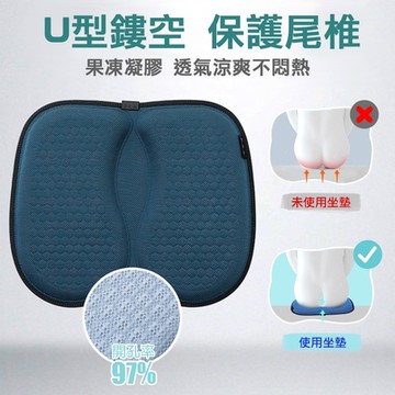HONDONI 夏日式5D水感凝膠涼感美臀全透氣坐墊 附布套 Q5-BL 43 x 37 x 5.5cm 傾城藍