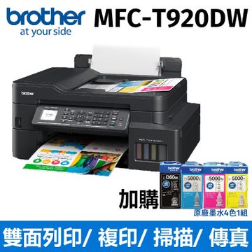 【搭BTD60BK+BT5000C/M/Y乙組】brother MFC-T920DW 威力印大連供 雙面商用無線傳真事務機