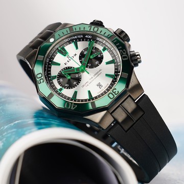 EDOX Delfin 海豚 水上冠軍 專業200米防水計時碼錶 新年開運 送禮推薦-黑X綠/43mm E10112.37GNVCA.ANV