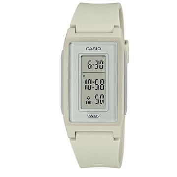 【CASIO】纖薄輕盈時尚流線長型環保材質數位休閒錶-米白(LF-10WH-8)