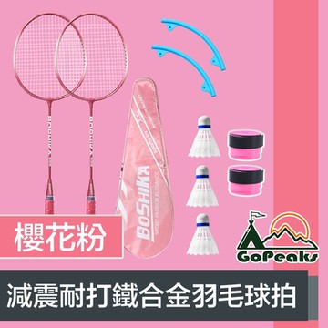 GoPeaks 顏系減震耐打鐵合金羽毛球拍2入組 贈球拍套+3球 櫻花粉