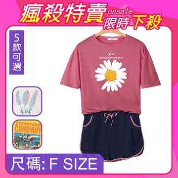 MXIAN - 純棉寬版印花T恤-開心花瓣-紫色
