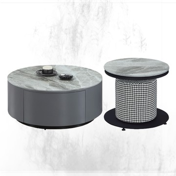 IHouse-士元 美耐板緩衝升降 客廳茶几(1桌6椅)/餐廳餐桌 梧桐