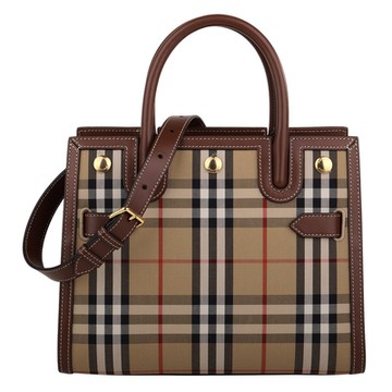 BURBERRY London經典格紋小型托特包(卡其)