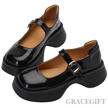【Grace Gift】玄玄聯名-優雅雙帶輕量厚底芭蕾瑪莉珍鞋 黑