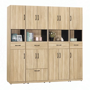 防蛀木心板+防潮耐磨腳座 原橡木紋色系+防夾手緩衝五金 開門櫃+四抽屜+內&外開放層格 專人送到府服務,免組裝免運費