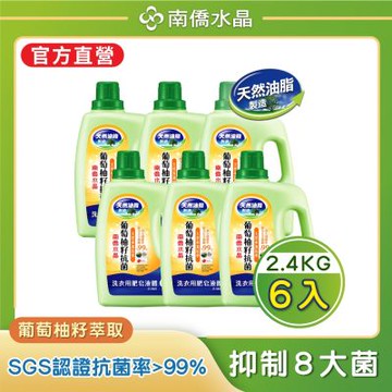 【南僑水晶】 抗菌葡萄柚籽水晶肥皂液體洗衣精2400gX6瓶(箱購)