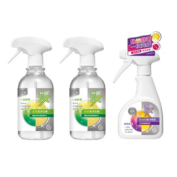 一級淨 電解EX-蔬果潔淨洗劑500ml/瓶 x2入 + 除油垢極淨噴霧260ml/瓶 x1入