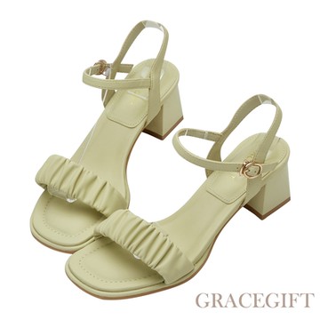 【Grace Gift】澎澎美學一字低跟涼鞋 綠