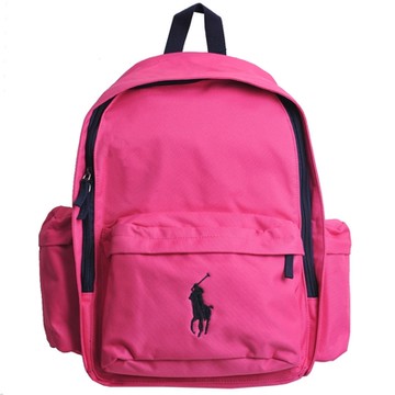 POLO Ralph Lauren 品牌LOGO圖騰刺繡尼龍後背包(桃紅/深藍馬)