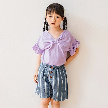 OB嚴選-童趣卡通印花立體蝴蝶結反褶袖上衣