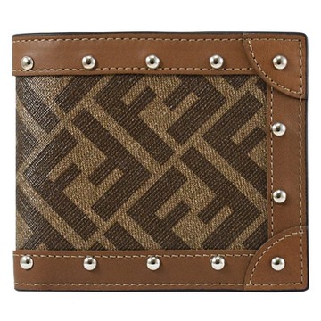 FENDI 7M0169 經典FF LOGO印花鉚釘對開八卡短夾.棕