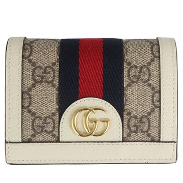 GUCCI Ophidia GG Supreme 綠紅織釦式對開短夾(米白)
