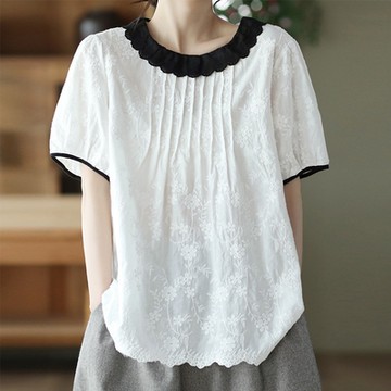 2026新款白色中袖襯衫女裝夏季蕾絲刺繡時尚洋氣高級感超好看上衣