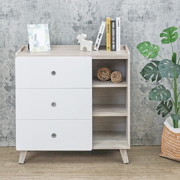 Boden-懷森3尺多功能右開放三格三斗櫃/三抽收納櫃/置物矮櫃-90x40x90cm