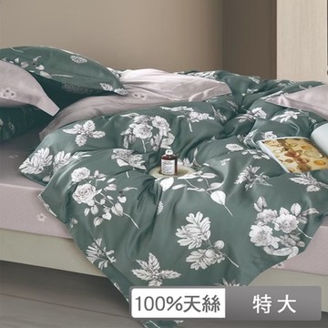 貝兒居家寢飾生活館 100%天絲四件式兩用被床包組 特大雙人 詩茵綠