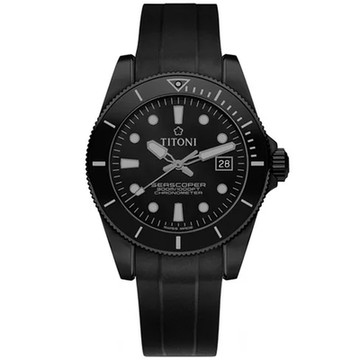 TITONI瑞士梅花錶 SEASCOPER300 海洋探索系列自製機芯天文台認證DLC全球限量款(83300 B-BK-R-716)-黑/42mm