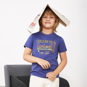 GIORDANO 童裝印花短袖上衣 快樂生活 - 72 海軍寶藍