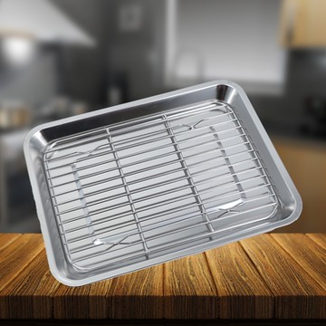 E.dot 不鏽鋼瀝油架烤盤 28.5x23x2.5cm 430不鏽鋼盤子 304不鏽鋼架子 不鏽鋼原色 1個