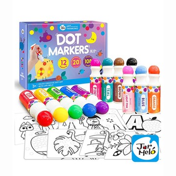 特殊筆頭,讓寶貝輕鬆流暢塗鴉 輕輕按下海綿頭,會有漂亮的圓點 不易漏水、容易抓握、快乾、無毒 12種繽紛色彩+20頁圖畫紙組