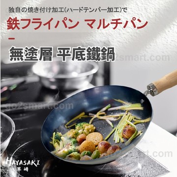 【日本 HAYASAKI早崎】日本製 無塗層 平底鐵鍋 28cm (不沾平底鐵鍋/鐵炒鍋/日本鐵鍋/不沾鍋)