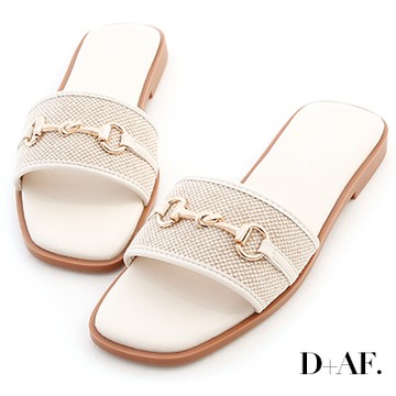 D+AF 貴婦下午茶.草編拼接馬銜釦平底拖鞋*白