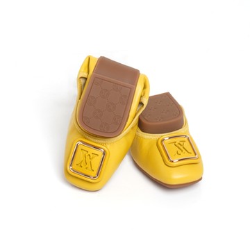 viina 芳達2· 全真皮金框logo方頭摺疊平底娃娃鞋-黃(版型偏小1碼)