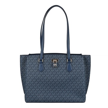 Michael Kors RUBY系列LOGO印花鎖頭設計PVC托特肩背包(大/深藍)