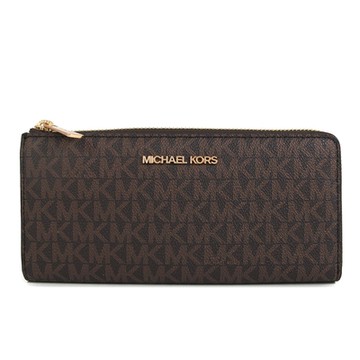 MICHAEL KORS Jet Set Travel 金字Logo防刮滿版L型拉鍊長夾(咖啡色)