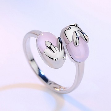I.Dear-正白K-粉紅玉兔-玫瑰粉晶兔子造型可調節開口戒指